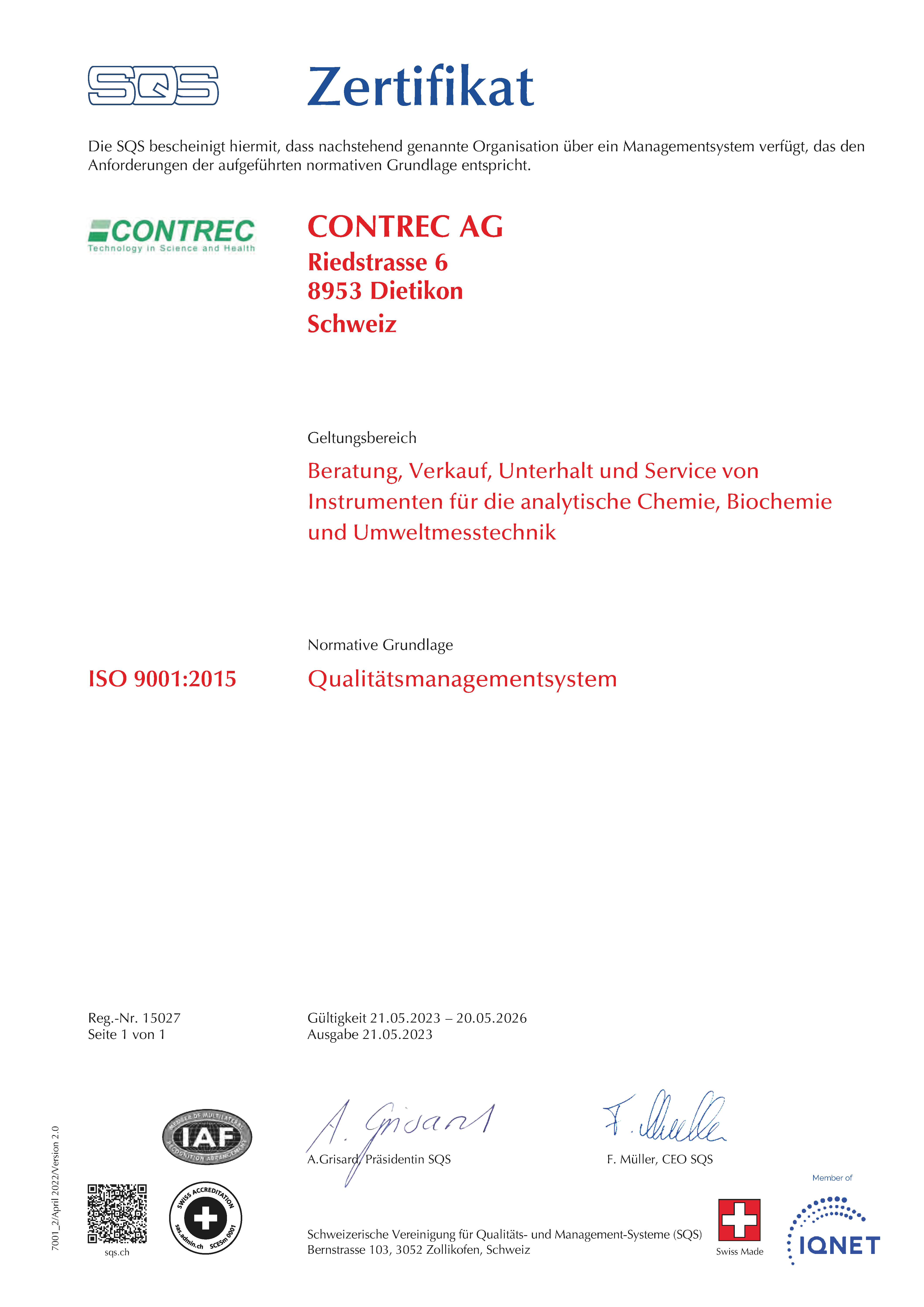 CONTREC AG erhält das neue ISO Zertifikat, welches bis 2026 gültig ist.